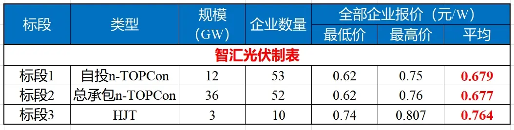 中電建51GW組件開標結果匯總;來源:智匯光伏