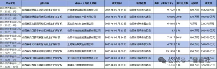 據不完全統計,2025年,山西省自然資源廳網上交易平台成功出讓9宗鋁土礦礦業(ye) 權,近半數來自呂梁,成交總價(jia) 超230億(yi) 元,成為(wei) 當年山西省礦業(ye) 權交易市場成交總金額最大的礦種。
